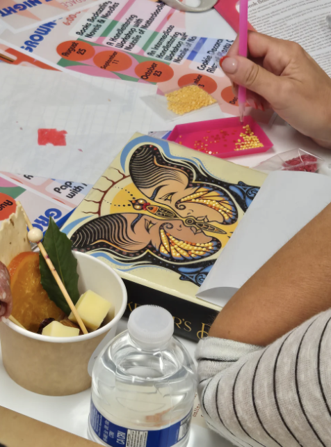 • Everyone is welcome at our book bedazzling workshop! However, please note that the drill beads that we use to bedazzle books are very small, so this is not a craft that is recommended for small children.